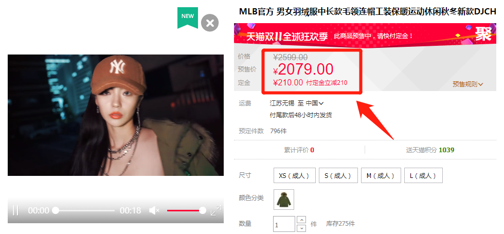 比如这件羽绒服,双十一预售价是2079,真的便宜么?