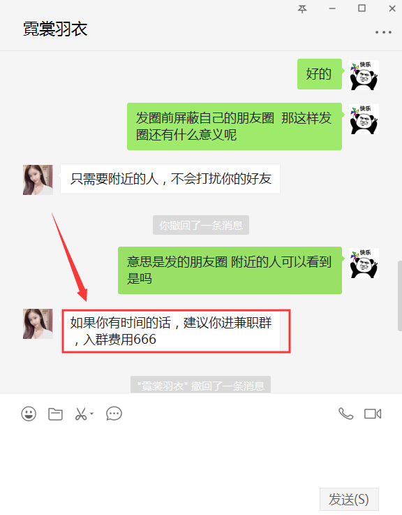 聪明的也许能看出来,他们大力宣传这个微信赚钱方法,拉那么多网赚人员进群,这就有了资源了,那他们是不是就可以打造一个付费兼职群来吸引人加入呢?