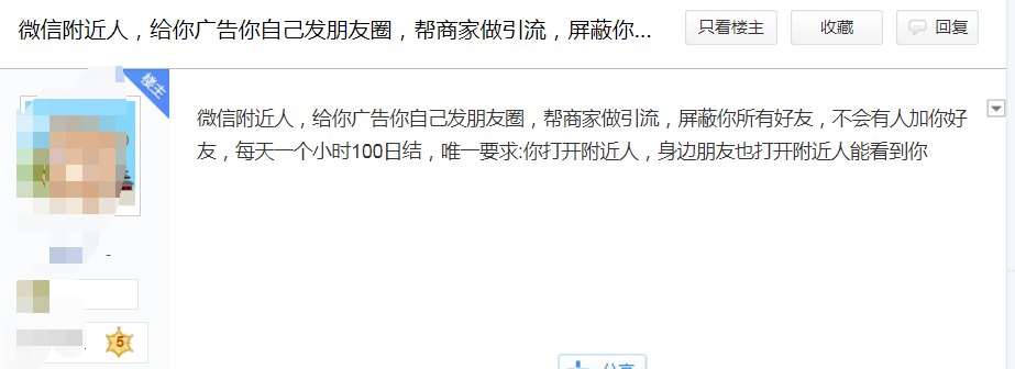B、发圈目的其实是为了帮助商家用附近人的功能做定点广告引流