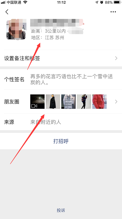 我们打开微信的附近的人,随意点开一个微信号,我们是可以直接看到他的朋友圈的,如果是你朋友,打开附近人也是可以看你的。这说明这还是能一定程度上起到引流的作用的。