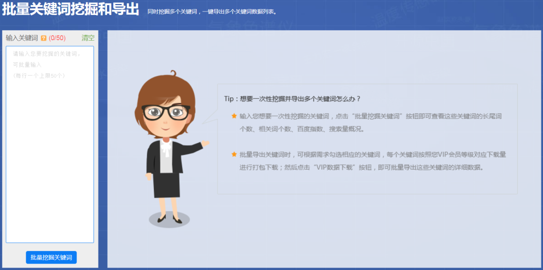 5118是有批量挖词的功能,可以尝试下:
