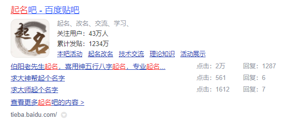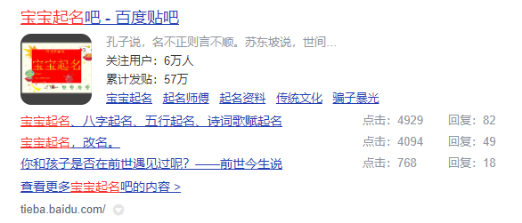 起名和宝宝起名都是百度收录吧,不仅能够获得贴吧的站内流量,还可以获得百度的站外流量。