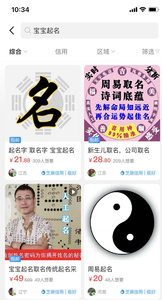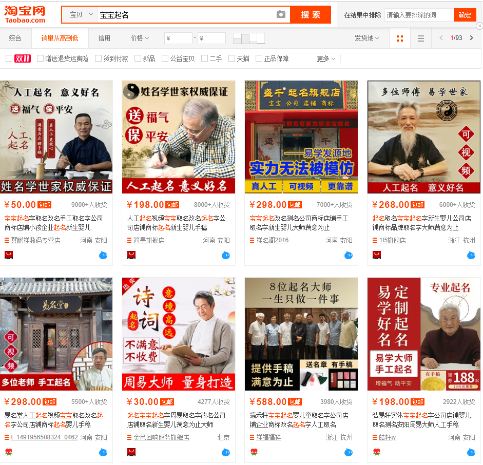 现在出生的孩子名字基本都带个轩啊梓啊之类的,大家都想要给孩子起个好名字,于是就有人在网上做起了起名的生意。
