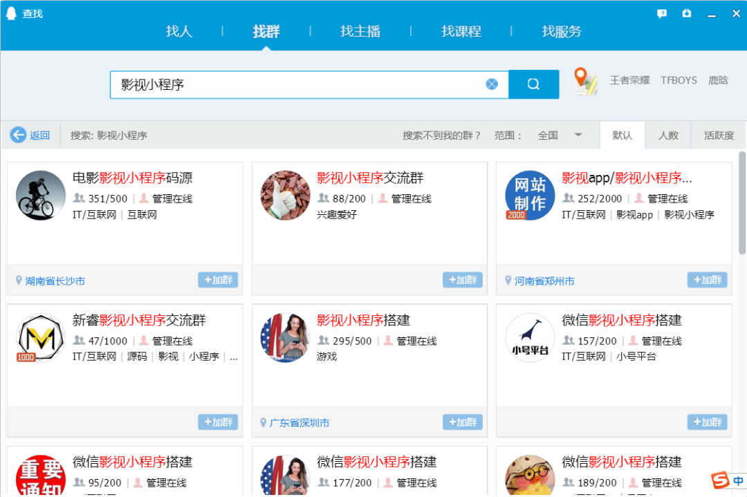 可以直接在QQ群里面搜索【影视小程序搭建】