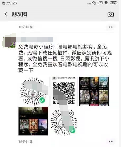 直接发你的小程序二维码,标题是可以免费看付费电影,电视剧之类的。