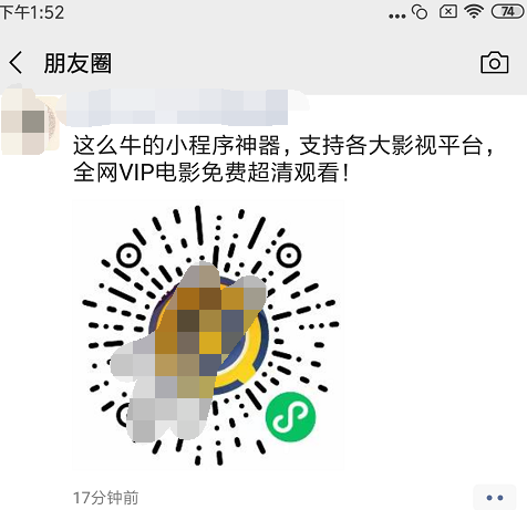 最近我的朋友圈,微信群,好友消息等都在大量的给我推一个项目——免费电影小程序。