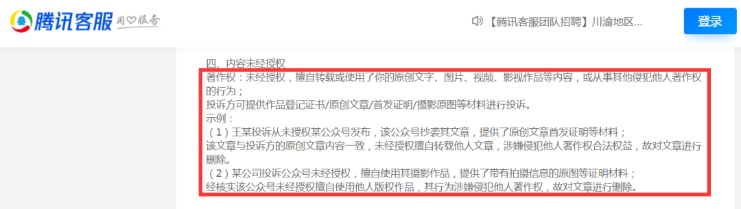 著作权:未经授权,擅自转载或使用了你的原创文字、图片、视频、影视作品等内容,或从事其他侵犯他人著作权的行为;